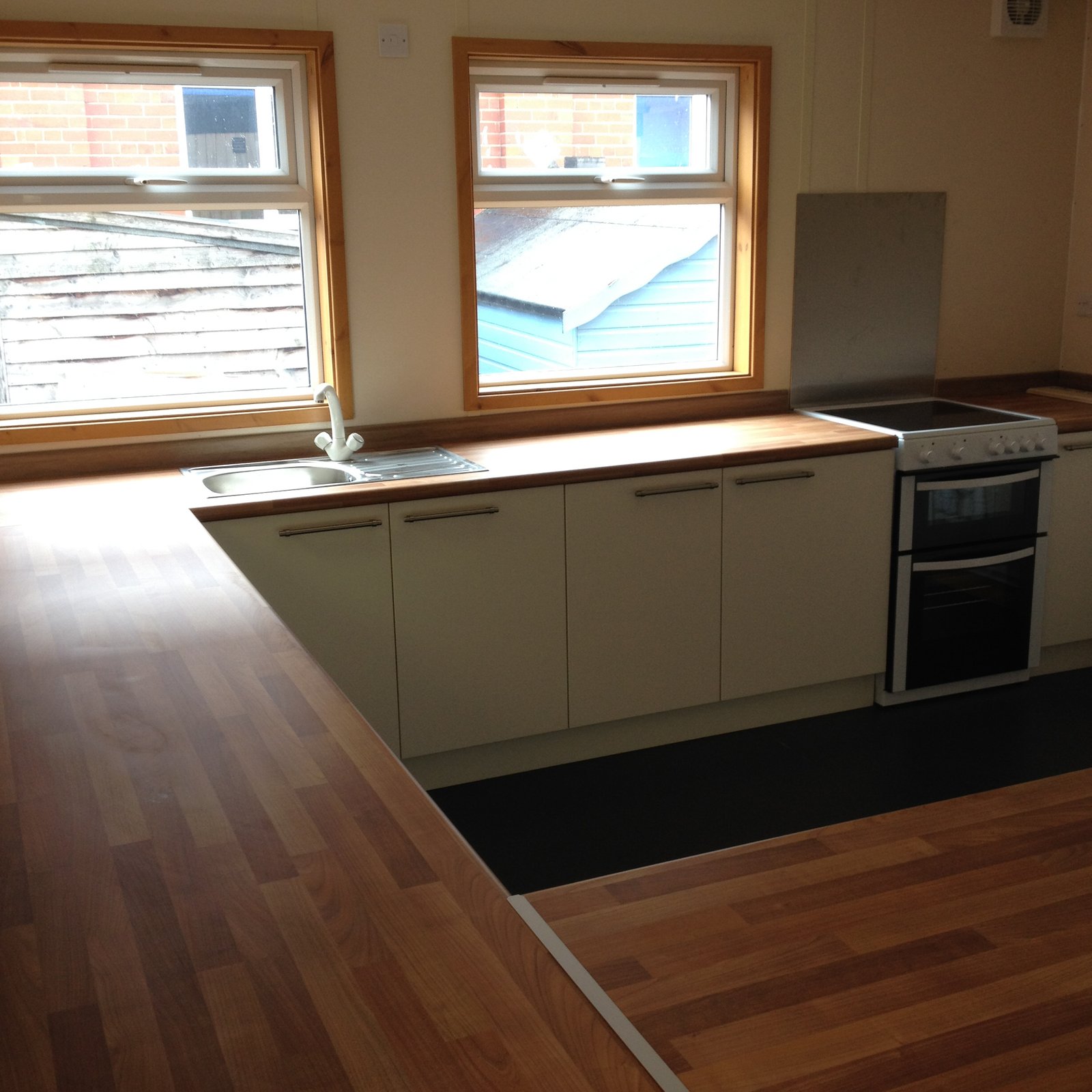 Steel joists, water resistant flooring and can be finished with either welded vinyl or carpet tiles